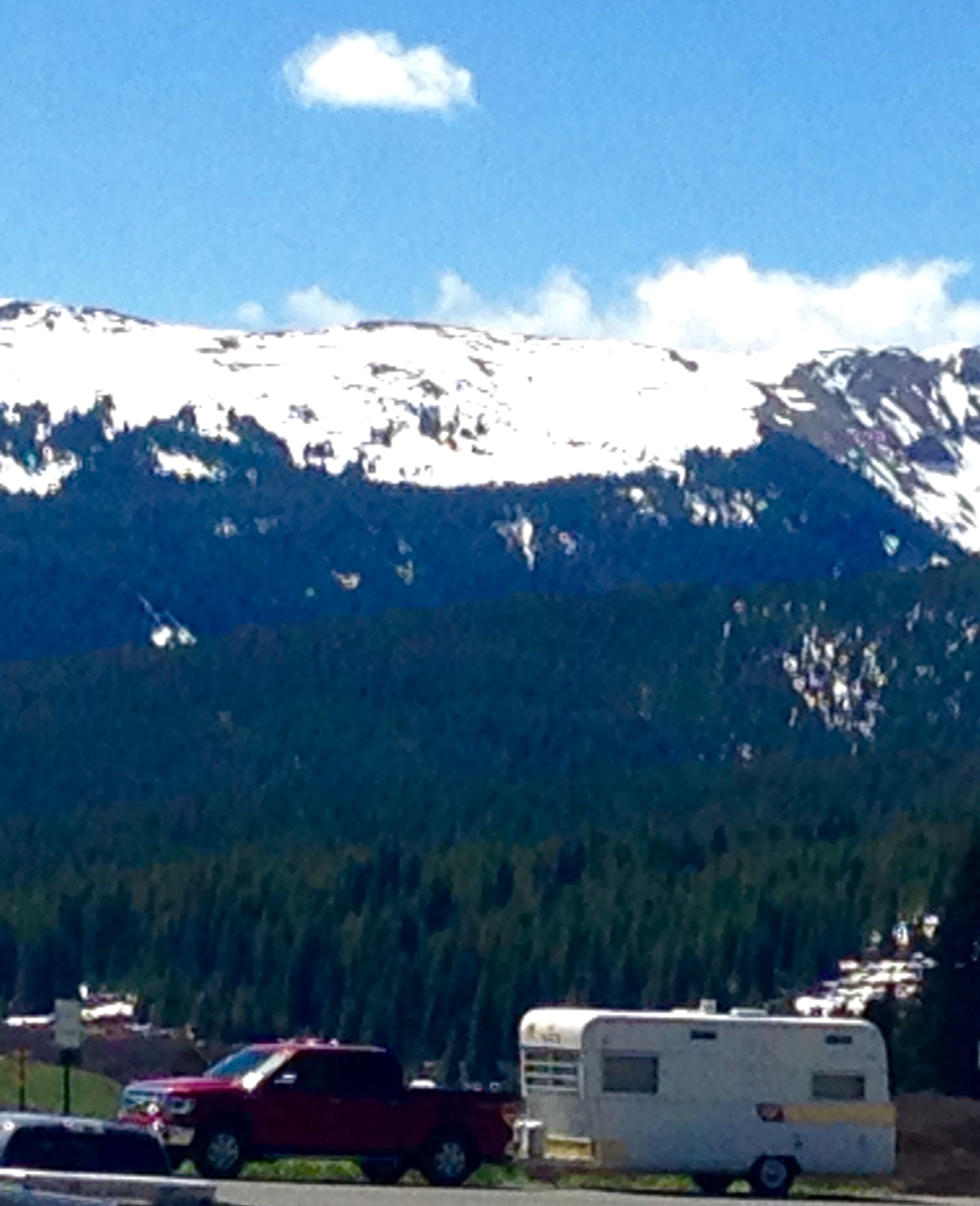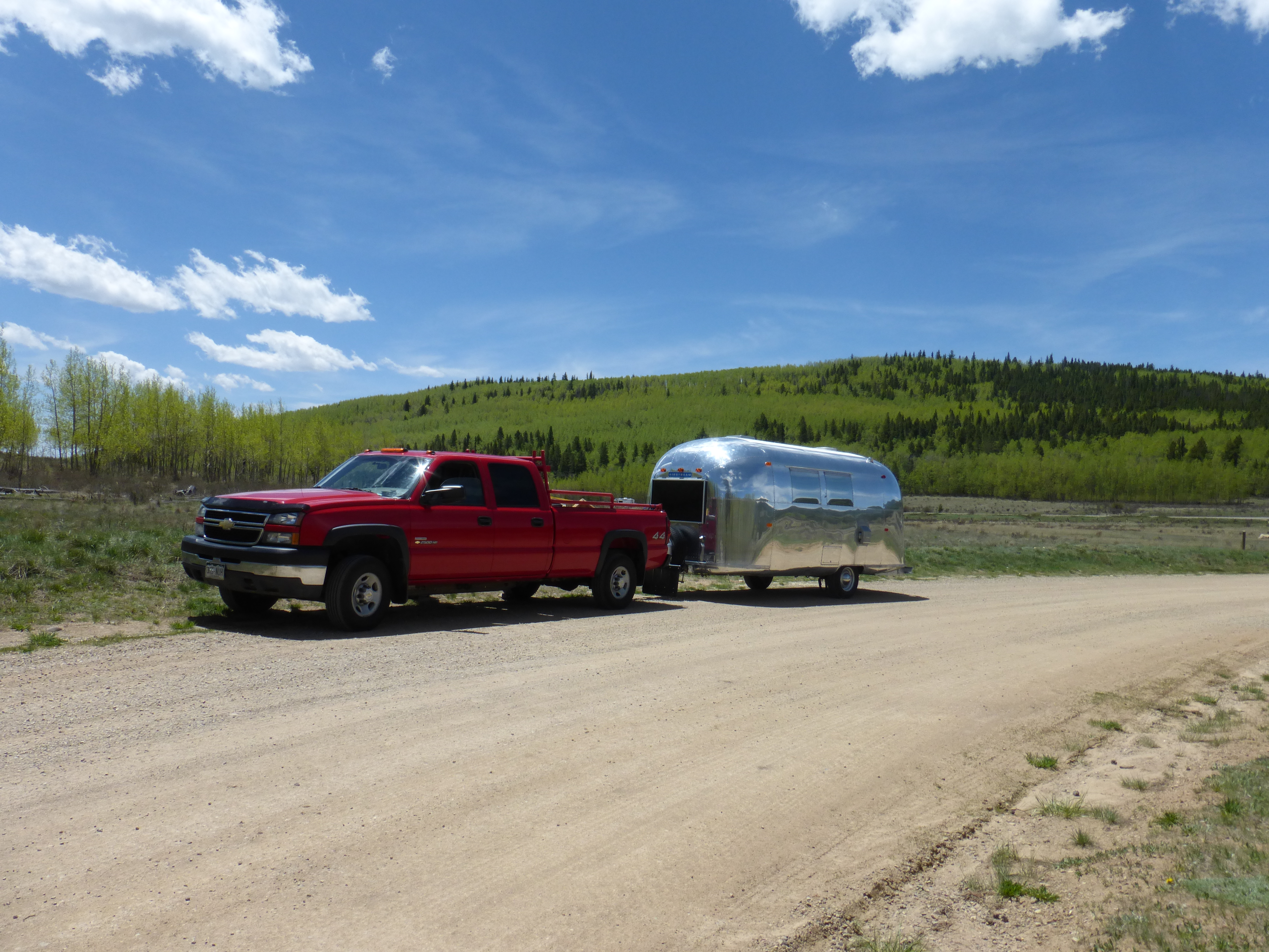 First of all….it hauled perfectly.  We used Dear Husband’s big boy truck (Chevy 4 door DuraMax), although my Tahoe would have pulled it just fine.  We stopped at Monument, CO for something to eat and a guy stopped and took pictures of it :).   It really is cute.  Granted, Midge has the “WOW!” Factor, but the Holiday Rambler can hold its own in that cat fight.