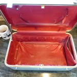 The interior was lined with red vinyl.  I tried to clean it, but did not have much luck.  Some of the straps, etc. were torn.  Did you know that old makeup has a VERY strong odor?  Good lord.  The smell on the interior of this thing was incredible!  Even after I stripped out the old vinyl!  I let some “odo-ban” sit in it for a day or two, and it helped quite a bit.  It was not a bad smell, just fancy old lady smell, and Auntie Jeanne was definitely FANCY!