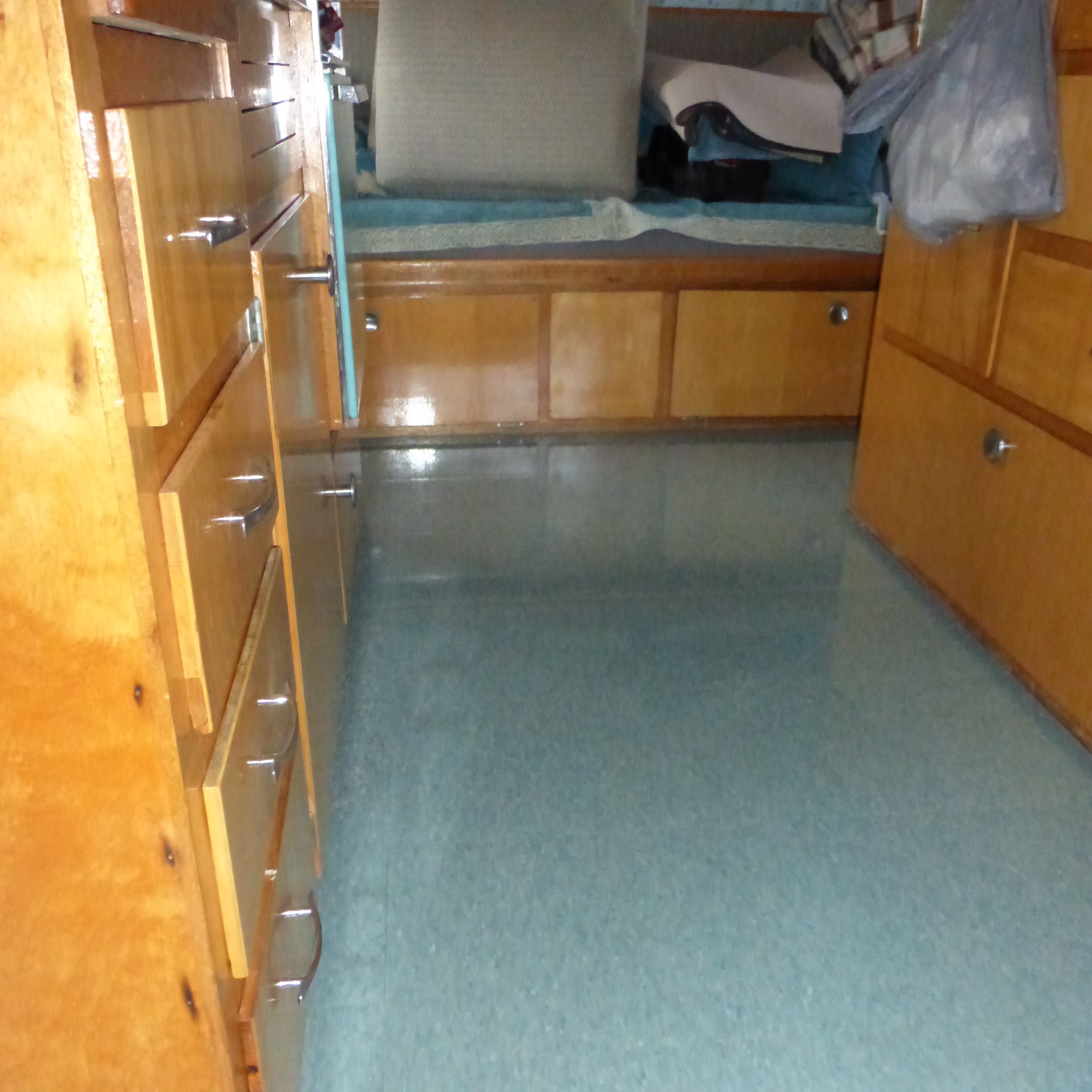 Trim installed and floor is done! It is so cute and really brightens up the interior.