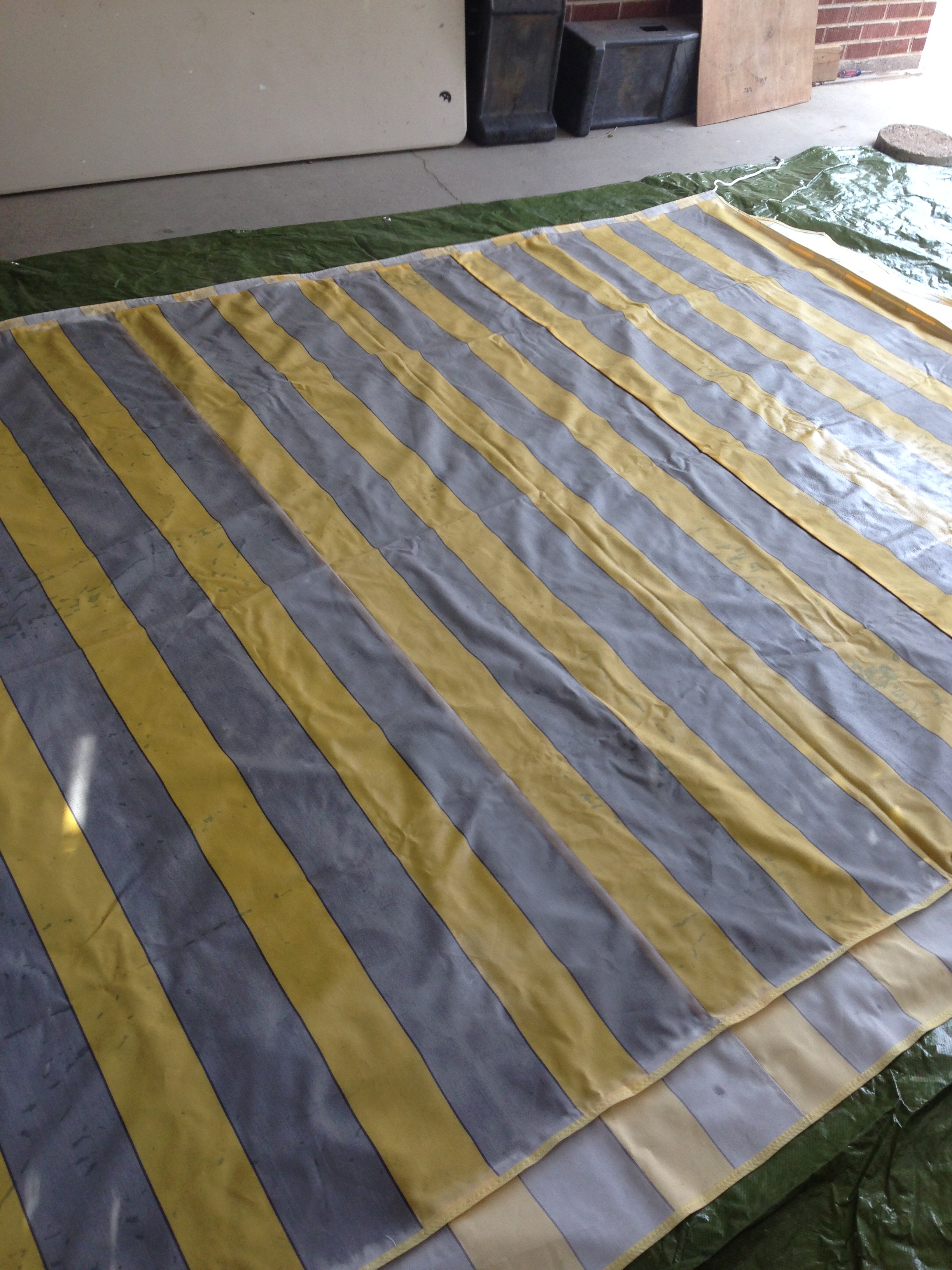 Have I told you how much I adore vintage sewing machines??? I think I have 10 now. I had 11, but gave one to my sister in Chicago. She does costuming for theater productions and needed a good work horse. At any given time I had 3 vintage machines going: my gorgeously handsome Singer Rocketeer 500A, my beautiful lavender/beige Kenmore 158.904, and not pictured here my atomic turquoise and white White 804. It makes sewing projects so easy when you have multiple machines with different threads ready to rock and roll! These babies knocked out all the cushion upholstery, throw pillows, curtains and awning with ease. I LOVE, LOVE, LOVE them! Scout out Goodwill and ARC. I usually find them for $20 – $30 :-). They are all metal and amazingly easy to work on.