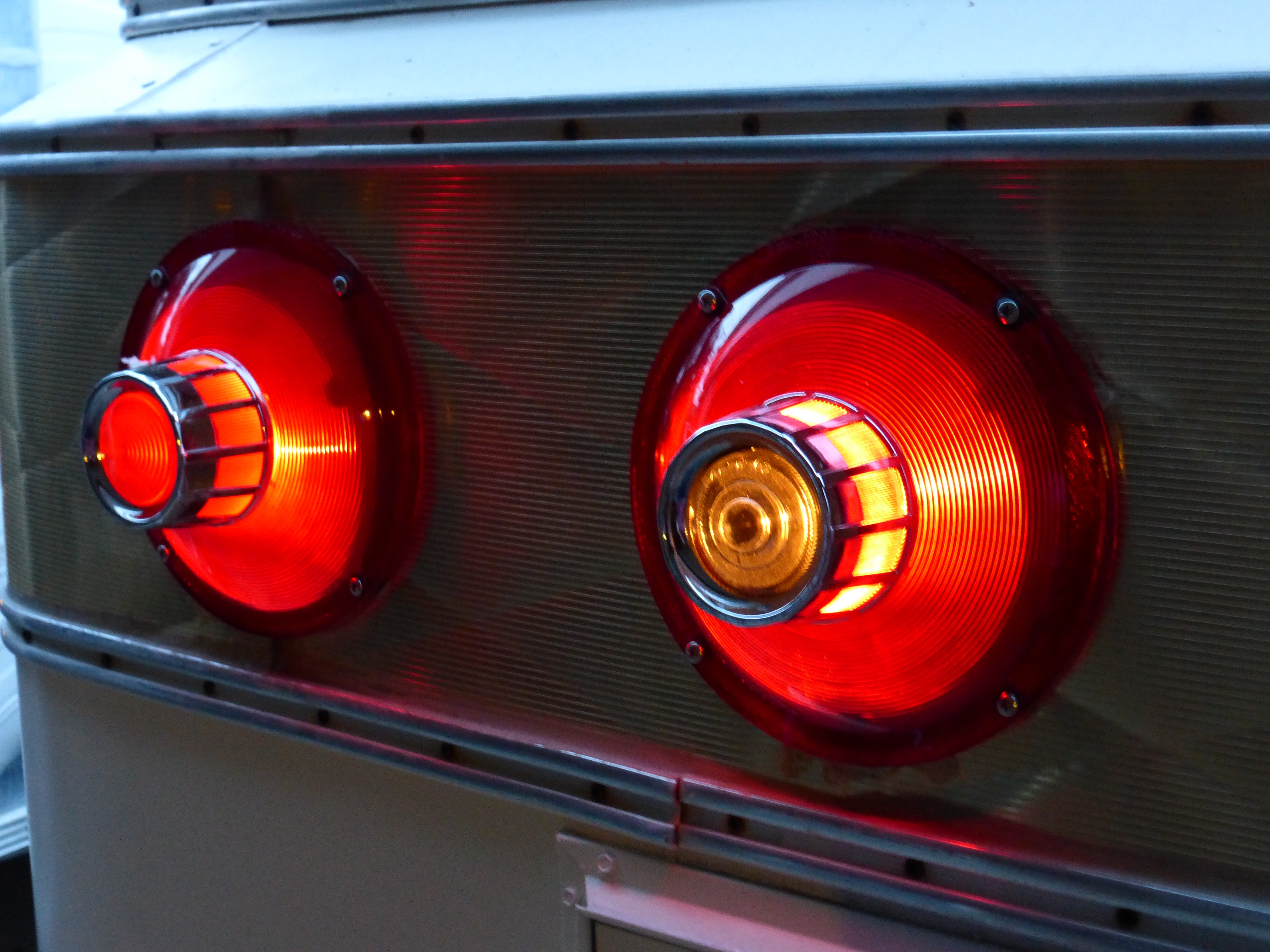Have I mentioned how smart and talented my Dear Husband is?? Well. He had the most wonderful idea to get some 1963 Ford Galaxie Tail Lights to replace the sad ones that we had. They are so cool! AND they cover all the crap that had been smeared around the old ones! Sweet.