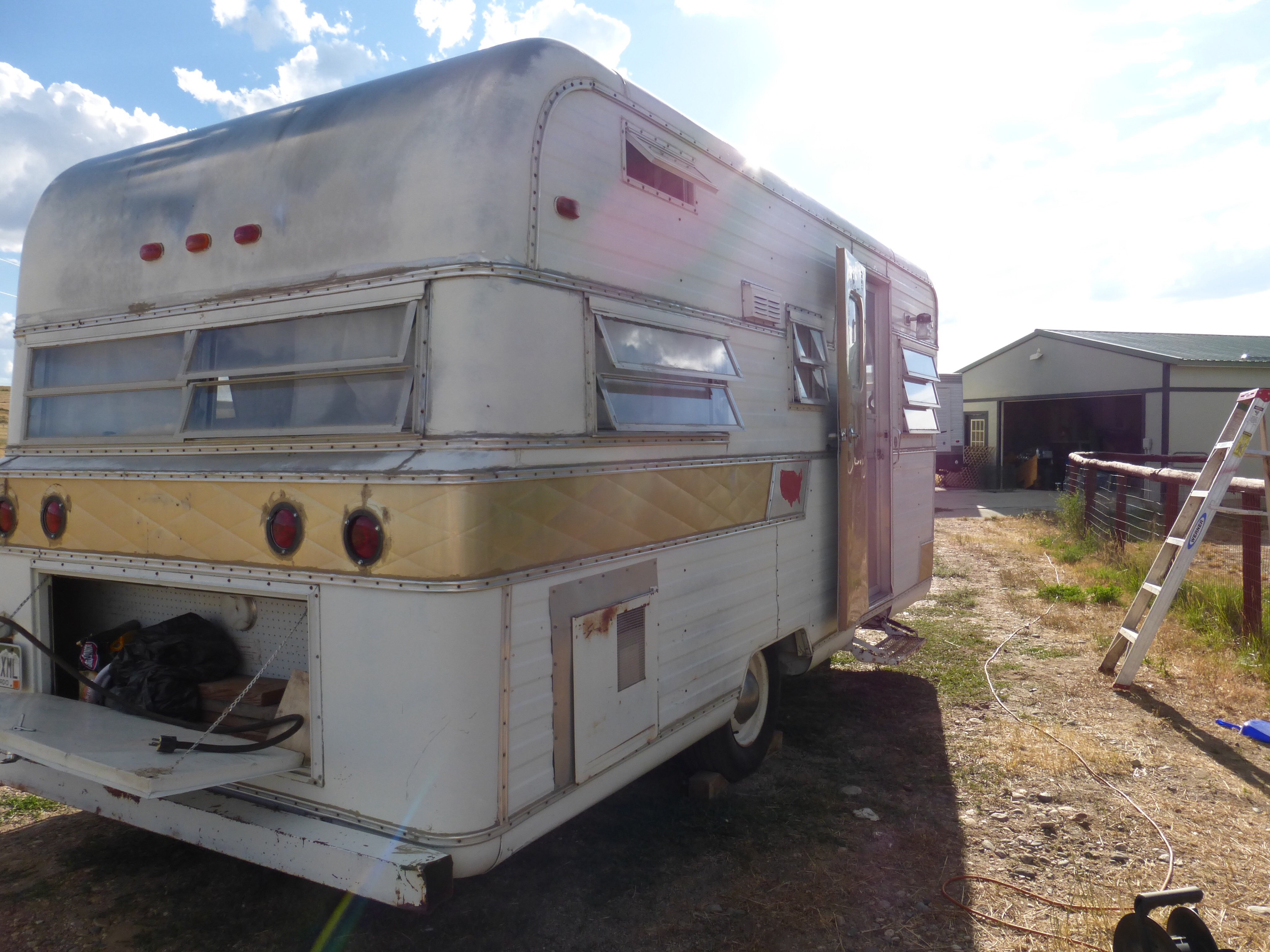 It looks pretty darn good!! I polished the gold banding with “Mother’s Cleaner and Polish” and it worked pretty well. We need to live with the banding as-is because the gold anodized banding is no longer available. We still need to figure out a fix for the poor entry door. It is in pretty bad shape. Dear Husband bought a new piece of plexiglass for it, and I have a really clever idea to make it cute, but will wait to share it ‘cuz it might not work and be really horrible. If it DOES work, I will post it. If it DOESN’T work, well…..then we will have to get a new door. Stay tuned!
